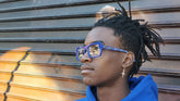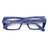Brighten every room like a dignitary with these captivating square frames. The royal blue hue along the frame brings alive designs along the temples that are rooted in even deeper ancestral richness.