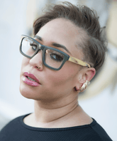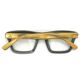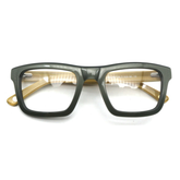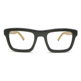 Command the room with this exclusive rectangle retro square frame build. Fashioned from a multi-faceted temple lens, with rich olive-green frame and blonde wood like temple has a rustic appeal.